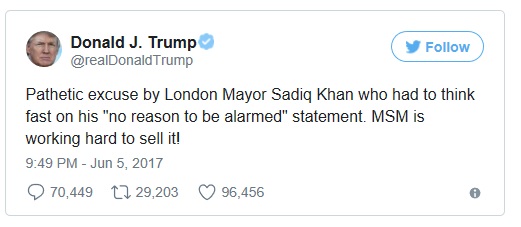 Trump’s tweet to London Muslim Mayor